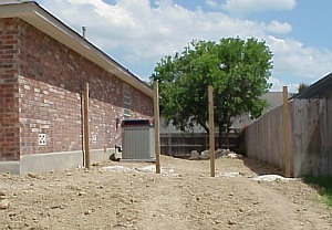 The new fence will only have to connect the two existing fences along the back of the property. Most of the fence posts were installed on Friday, June 4, 1999, and the workers will come back on Monday to finish the work.